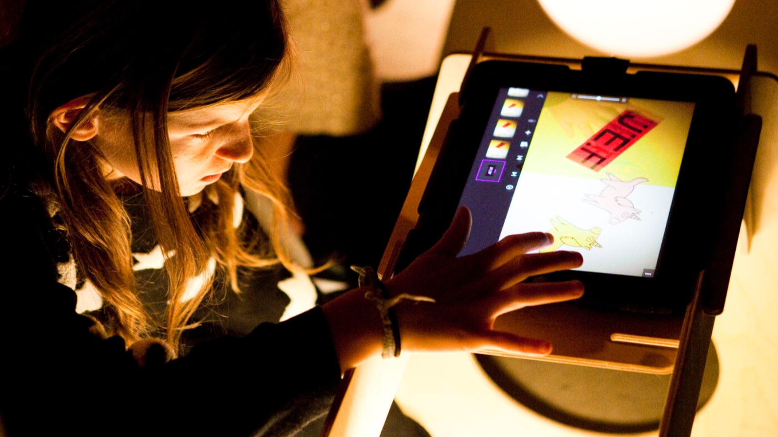 Draw on the floor, record your creation thanks to the Magic House, and watch your drawing come to life in real time on the wall!