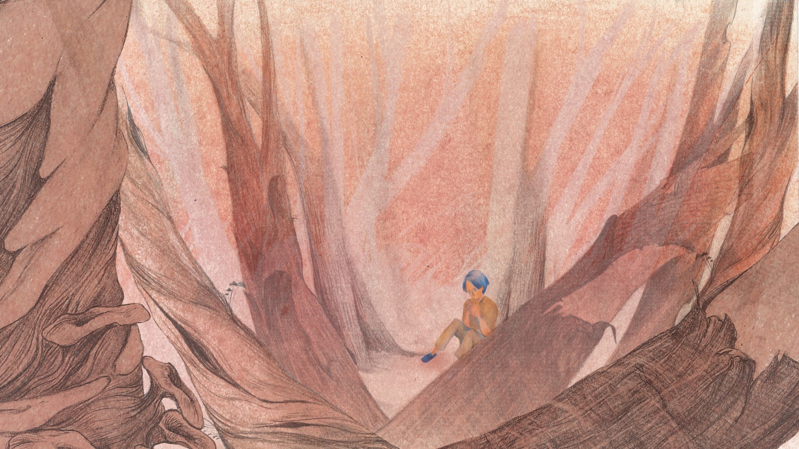 Na een lekke band blijft een vrouw alleen achter in het bos. Ze herbeleeft de dwangmatige herinneringen aan haar zelfvernietigende impulsen. Terwijl ze de huid van haar vingers afscheurt, dompelt elk stukje haar dieper onder in het verleden. Met elke laag komt ze dichter bij het kind dat in haar verborgen zit.