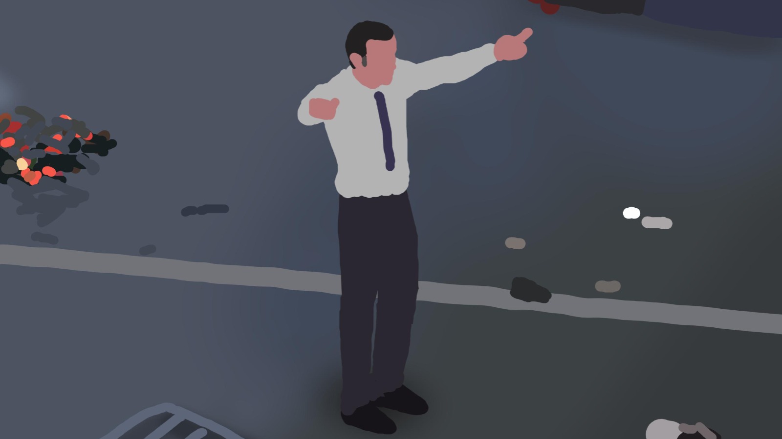 Tijdens een betoging staan twee teams van de ordehandhaving tegenover elkaar op het terrein.